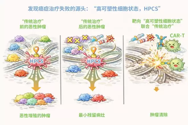 进一步的研究表明,在肿瘤发生早期清除“高可塑性细胞状态”肿瘤细胞能有效阻断其恶性演进;而在肿瘤晚期中靶向清除该类细胞,则可显著抑制肿瘤生长。(记者侯文坤)