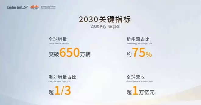 根据2030年战略目标,吉利控股集团将确保关键竞争力指标达到全球车企的领先水平,努力成为中国企业高质量全球化发展的引领者。