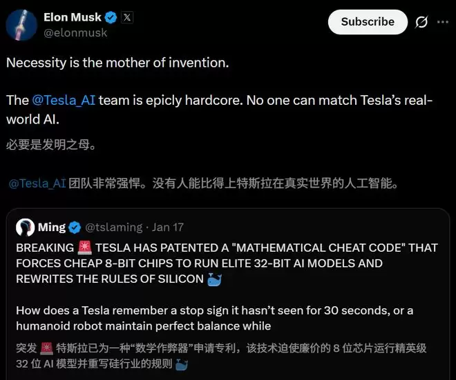 正是在这样一个由5万亿巨头统治、且入场费极其昂贵的「物理AI」赛道上,特斯拉的那种「在8位芯片上跑出32位精度」的突破,才显得尤为关键。