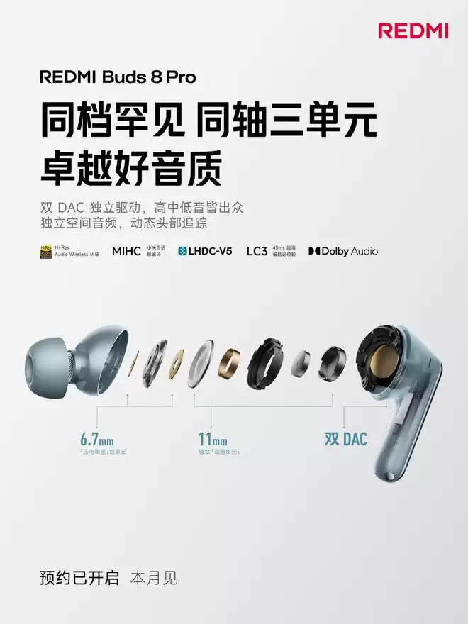 Redmi Buds 8 Pro官宣:搭载罕见陶瓷同轴三单元