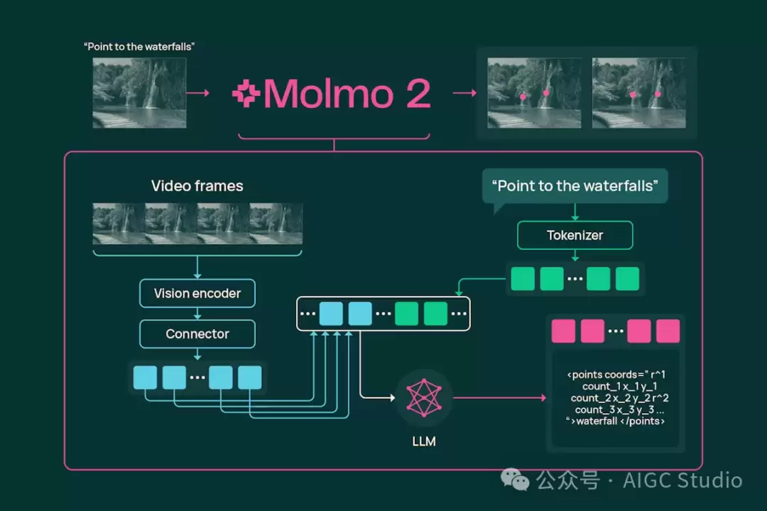 Molmo 2的核心设计理念是Grounding(接地)——即让语言信号与视觉信息在空间和时间上实现精准对齐。