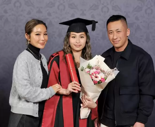 大女儿周梓潼(Virginia)今年24岁,被家人送到英国伦敦读书,如今已经是从心理学科获得硕士学位。