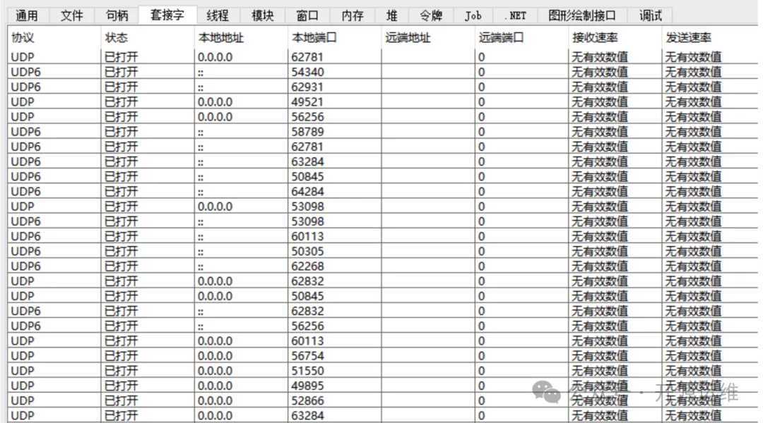 展示进程的所有TCP/UDP网络连接,并显示实时的上下行数据速率。它可选基于ETW数据展示UDP伪连接,让无连接的UDP通信也现形。网络面板让你一清二楚,究竟是哪个程序在后台悄悄上传或下载数据。5. 模块管理