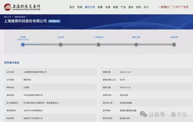 至2026年1月1日,公司完成上市辅导,并于2026年1月22日,其科创板IPO申请或获受理。