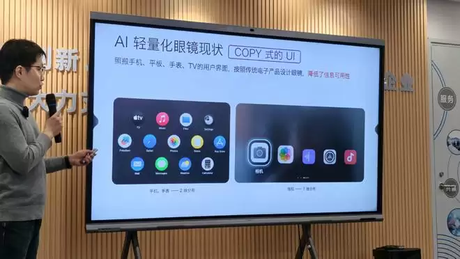 当前,轻量化AI眼镜的UI基本上是照搬手机、平板、手表、TV的用户界面,按照传统电子产品设计眼镜,降低了信息的可用性,是一种“COPY式的UI”。