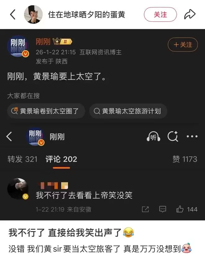 比黄景瑜要上太空更好玩的是关于这事的评论,2028年还有很多未知之数,现在“太空人”的招牌是吹出去了,至于后续是否有变化还是未知之数。不知道吴京、王一博等明星会不会跑到黄景瑜前面呢?我们拭目以待吧~