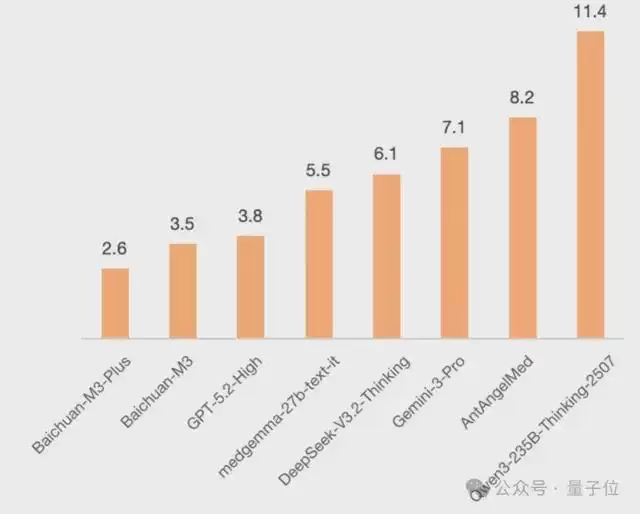这个幻觉率水平,已经低于目前业内公认的标杆产品水平,也低于部分人类医生在复杂医学问题上的平均误判率区间。