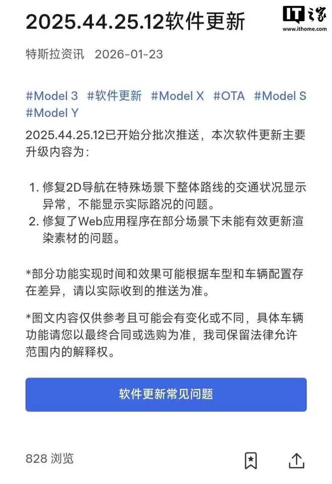 需要注意的是,由于特斯拉采用分批推送机制,部分车辆检测到此次升级的时间可能略有延迟,通常数日内即可在车机上收到更新提示。