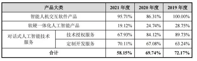 2019年、2020年、2024年、2024年,其综合毛利率分别为72.17%、69.74%、58.15%和57.91%。