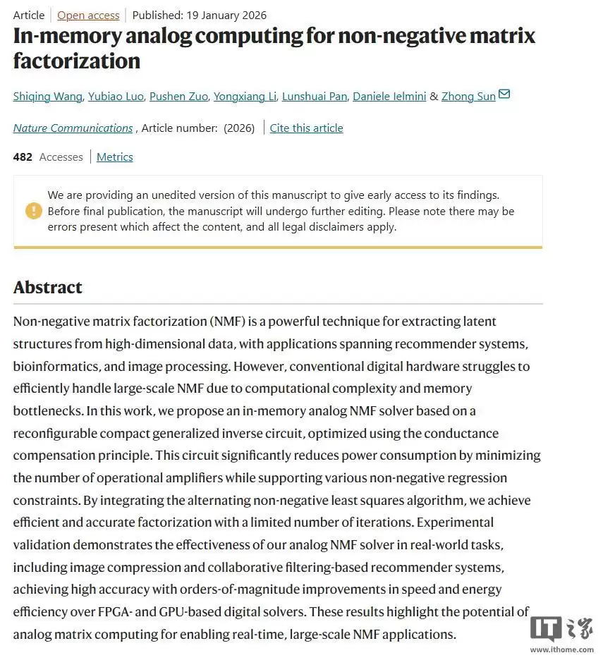 孙仲表示,这项工作为非负矩阵分解这类约束优化问题的实时求解提供了新路径,展现了模拟计算在处理复杂现实数据方面的潜力。该技术未来有望推动实时推荐、高清图像处理及基因数据分析等应用向更高效、更低功耗的方向发展。