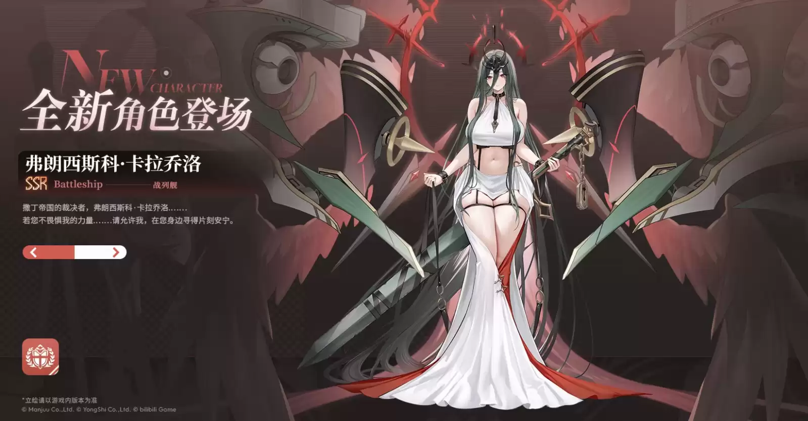 迈入2026年,来自撒丁帝国的多艘全新舰船已正式实装上线!《碧蓝航线》1月限时活动【光影风尚—拍摄进行时!】现已开启,活动期间(2026.01.22 ~ 2026.02.05 维护前),指挥官可通过限定建造获取全新的超稀有战列舰「弗郎西斯科·卡拉乔洛」、精锐轻巡洋舰「阿尔贝托·迪·朱塞诺」,累计PT还可获得精锐驱逐舰「乌戈里尼·维瓦尔迪」等角色。作为历史上颇具名气的无畏舰,「弗郎西斯科·卡拉乔洛」命运多舛,如今终于能在《碧蓝航线》的大海上一展风采,感兴趣的指挥官千万不要错过哦。