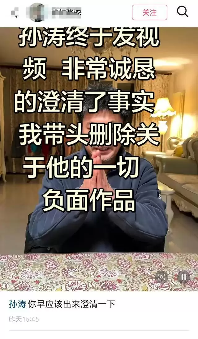接着更离谱谣言冒头,说他靠妻子吃软饭,妻子为他依附他人,有人还模仿他语气发道歉声明,甚至造谣他带货被骂下播,可孙涛从没带过货。