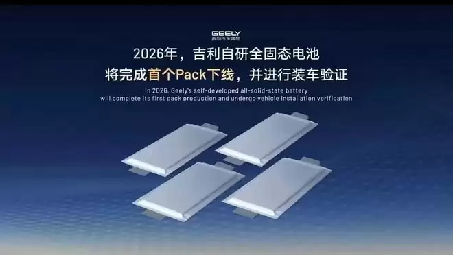 1月24日,据IT之家报道,在1月22日举行的吉利控股集团战略解析会议上,吉利汽车集团CEO淦家阅宣布了一项重要计划:到2026年,吉利自主研发的全固态电池将完成首个Pack生产线的投产(这里的“Pack生产线”指的是将单体电池组装成完整电池组的总装产线),并进入装车验证阶段。