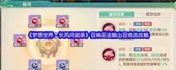 在《梦想世界》长风格问剑录里,召唤魔法输出流派是一种极具特色和威力的组合。下面为大家详细介绍其搭配要点。