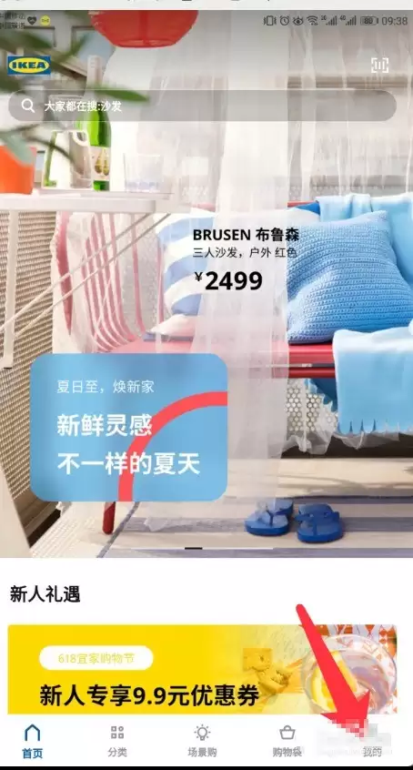 启动宜家APP后,直接点击首页下方的【我的】标签,进入个人中心。