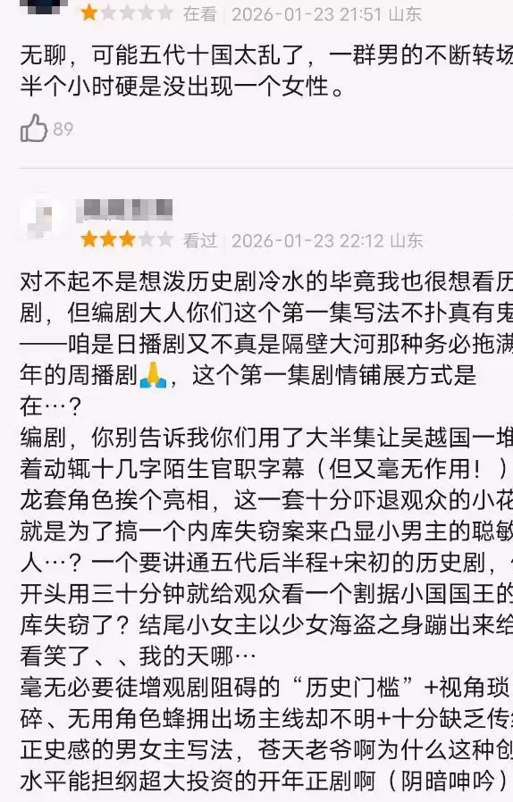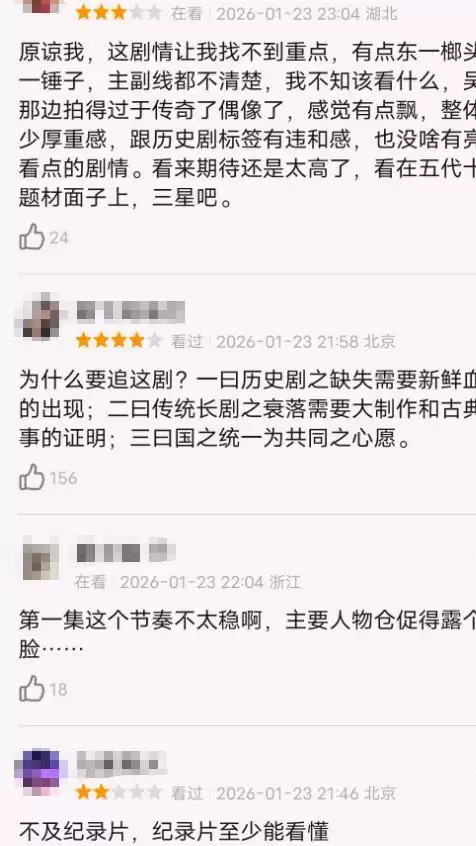 听起来是非常宏大的历史剧,但看观众的长文差评就知道了,宏大得有点过于零散了。