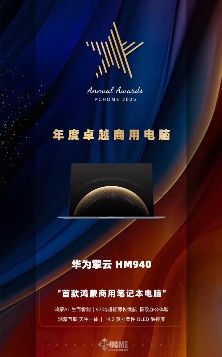 PChome年度卓越产品评选活动现已圆满落幕。在2025年度的评选中,数十款产品凭借其卓越表现脱颖而出,荣膺年度奖项。PChome始终坚持严谨、公平、公开、客观、专业的媒体基准,为广大网友甄选优秀产品,这既是我们的使命,也是我们的立业之本。在本次评选活动中,华为擎云+ HM940凭借其出色表现,荣获PChome 2025年度卓越商用电脑奖项。