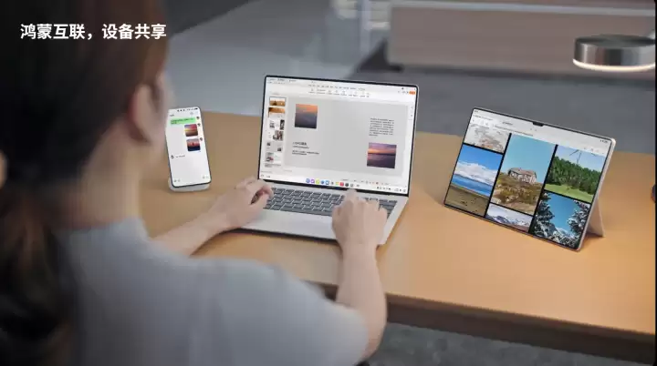 得益于HarmonyOS 5创新的跨设备协同技术及分布式软总线技术,华为擎云+ HM940可与平板、手机等终端设备在靠近时实现自动发现与连接,进而实现硬件能力调用与高效地互联互通,带来便捷高效的使用体验。它不仅支持跨设备互通,可让图片、文件等内容在不同设备间轻松流转,其“手眼同行”功能还支持让光标、键盘随注视设备自动跟随,助力用户实现顺畅的跨设备办公;应用接续功能,可实现手机与电脑间的网页浏览自动同步、跨设备会议沟通不中断,极大简化了混合设备间的办公流程;华为分享功能可实现文档零压缩、无损分享,并支持一对四高速并发共享,切实提升了多人协同工作效率。此外,在进行文档编辑时还能直接调用手机摄像头或图库素材,配合进阶键鼠体验,进一步强化了多设备协同办公的效率。