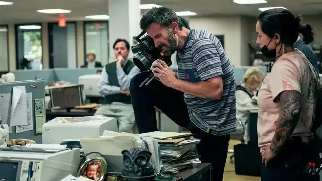 △本·阿弗莱克在《气垫传奇》片场测试镜头效果,他身兼该片的导演和主演