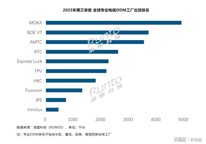 全球代工市场聚集效应加剧,头部企业优势持续扩大。茂佳本就以每月百万台级的稳定出货量领跑,在叠加索尼的订单后,与第二名的差距将进一步拉开。与此同时,富士康、冠捷等竞争对手增长乏力,更让茂佳的领先地位难以撼动。
