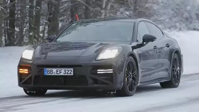 【保时捷Panamera改款原型路测图曝光:升级灯组与雷达】1月24日消息,汽车媒体autoexpress发布博文,分享了一组抓拍的路测图,展示了保时捷正在测试、经过伪装的Panamera改款原型车。定位方面,本次曝光的原型车推测为高规格的混合动力车型,判断依据主要包括位于车身左侧的充电接口盖板,通常仅见于Turbo或GT系列的“中央锁止轮毂”(Center-lock wheels)以及大尺寸碳陶瓷刹车系统。这些特征暗示,新车极有可能是现款Turbo S E-Hybrid的升级版,甚至是定位更高的全新高性能衍生车型。(IT之家)