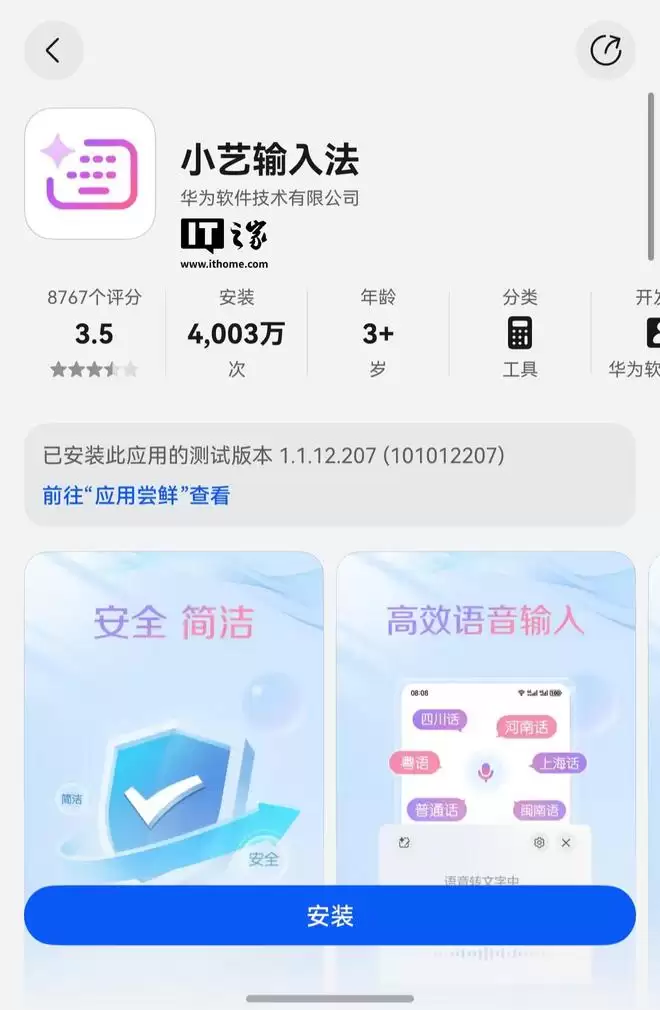 IT之家1月25日消息,华为应用市场AppGallery最新数据显示,小艺输入法的安装量已正式突破4000万次。这一里程碑不仅标志着输入法本身的受欢迎程度,也意味着搭载HarmonyOS 5/6的终端设备数量同样突破了4000万大关。