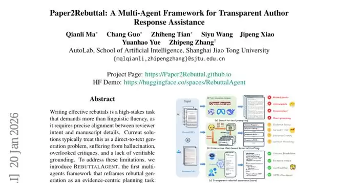 A:RebuttalAgent是上海交通大学开发的多智能体系统,专门帮助学者撰写高质量的论文审稿回复。它通过拆解审稿意见、收集证据、制定策略等步骤,生成专业而有说服力的回复内容。