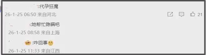 只是评论区热评都是质疑声,有网友直接怒斥“代孕狂魔”,这话就有些扩大化了,毕竟杨天真是否有参与代孕一事还是未知数。但网友根据她的言行,猜测她帮张雨绮隐瞒了代孕争议,而后续的合作中止也是及时跑路,不想被牵连。