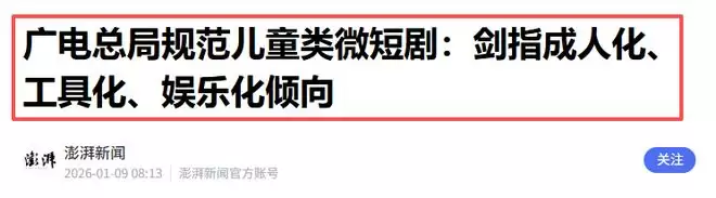 此外,在1月8号,广电总局还发布了《儿童类微短剧管理提示》。