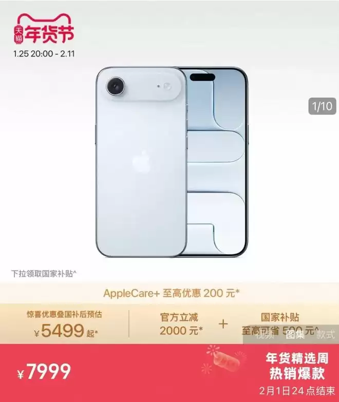 据悉,天猫Apple Store 最新旗舰店将对 iPhone Air 手机进行促销。活动期间,最新立减2000元,叠加国补后,可以做到低至 5499 元到手。