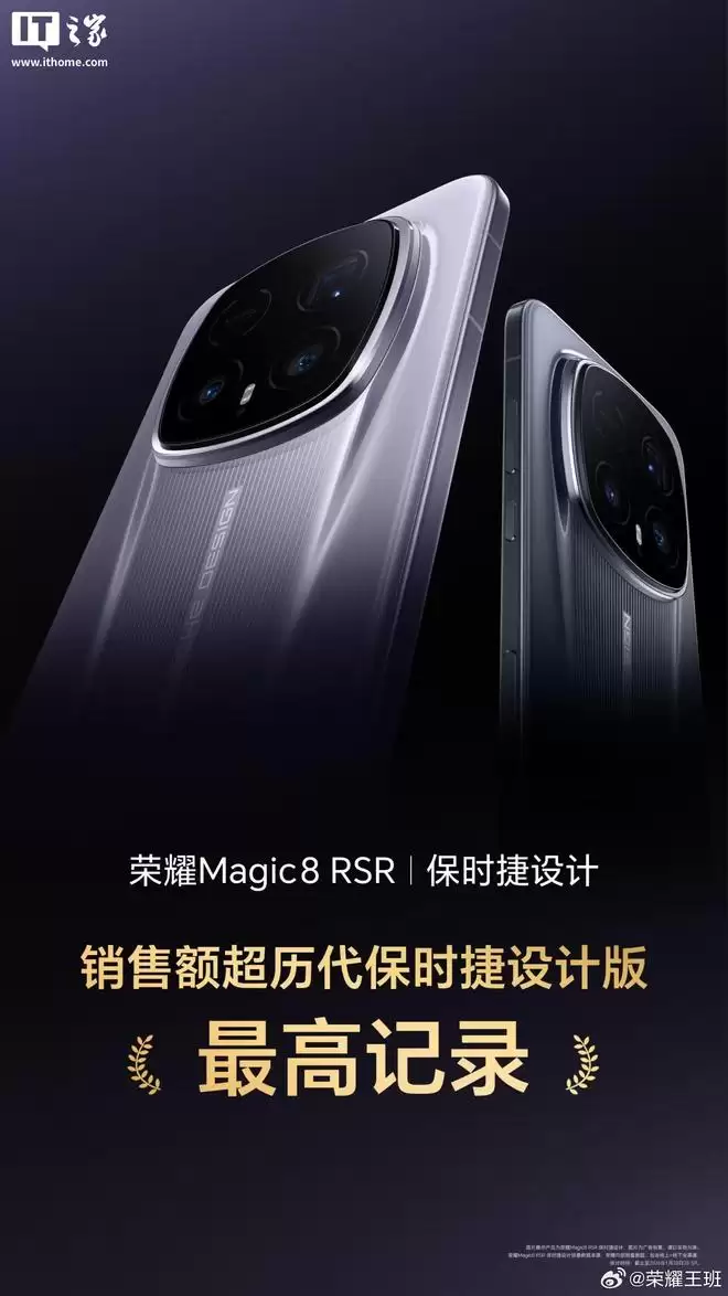 另据IT之家此前报道,荣耀性能开发工程师陈立庚于1月18日在微博上透露,本次发布会的新品包括Magic8 Pro Air以及作为保时捷设计系列收官之作的巅峰产品。这意味着荣耀Magic8 RSR保时捷设计将成为荣耀最后一款保时捷设计机型。