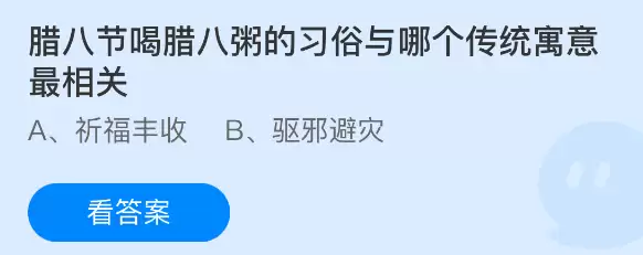 腊八节喝腊八粥的习俗,究竟与哪个传统寓意最为相关?支付寶小雞课堂开课咯!每天花上一分钟答题赚饲料,喂喂小鸡就能贡献爱心啦!轻松又有意义!2026年1月26日螞蟻莊園的小雞課堂題目正確答案是【祈福豐收】,腊八节喝腊八粥的习俗与祈福丰收的寓意最为相关。