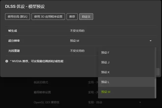 NVIDIA APP中的DLSS预设会覆盖游戏内的设置