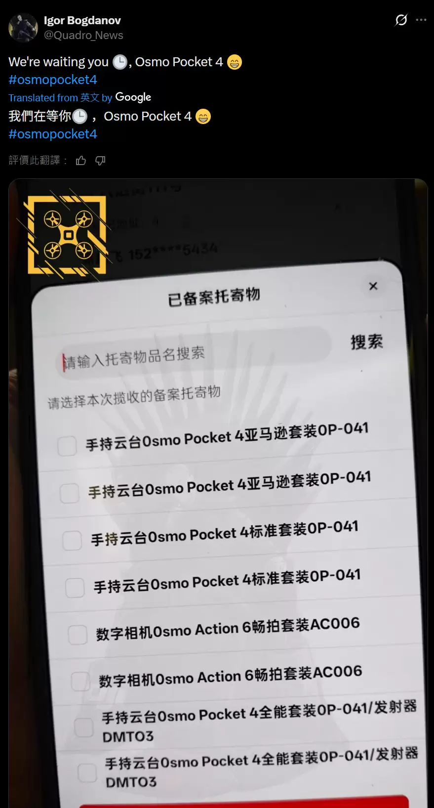 结合IT之家此前的报道,这位爆料人还在1月21日分享过一张可信度较高的仓库库存管理应用截图,显示大疆Osmo Pocket 4云台相机已经抵达主要零售商处。