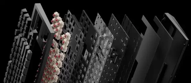 Keychron V Ultra 8K键盘外部配备了可调节的旋钮和两段式脚撑,内部则具备五层消音结构。其PCB板支持轴体热插拔,并带有南向RGB背光灯效。此外,键盘在有线和无线模式下均可实现8000Hz的超高回报率,内置电池容量为4000mAh。