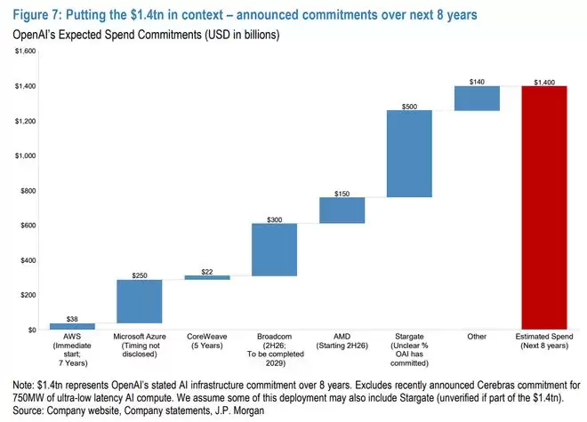首先是庞大的免费用户基数。在ChatGPT约9亿的周活跃用户(WAUs)中,约95%为免费用户,在缺乏“免费增值”转化模型的情况下,维护如此庞大的用户群成本高昂。其次是惊人的资本开支压力。OpenAI已承诺在未来八年内投入1.4万亿美元用于AI基础设施建设,仅靠订阅和API收入难以覆盖这一巨额支出。
