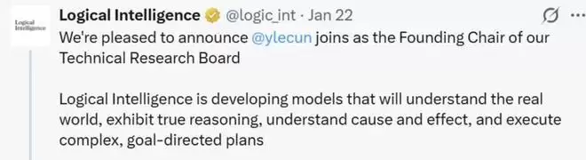 值得一提的是,在业界另一条技术路线中,LeCun 也开始发挥更广泛的影响力。近日,硅谷初创公司 Logical Intelligence 任命 Yann LeCun 为其技术研究委员会创始主席。