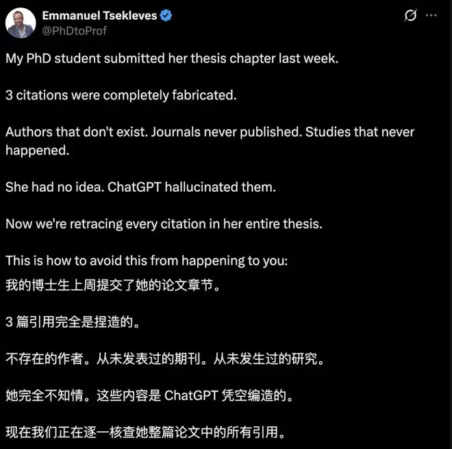 比如,Emmanuel教授的博士生是在完全不知情的情况下引用了AI生成的内容。