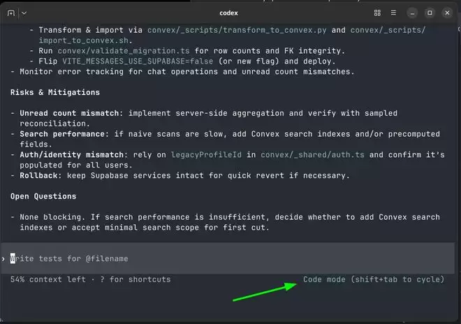 Code模式是Codex的默认体验,它的工作方式和其他AI智能体一样。