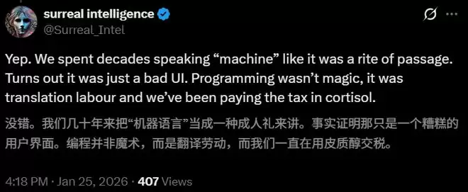 人类直接手写代码,正在变得不再有任何意义,甚至是一种效率的浪费。