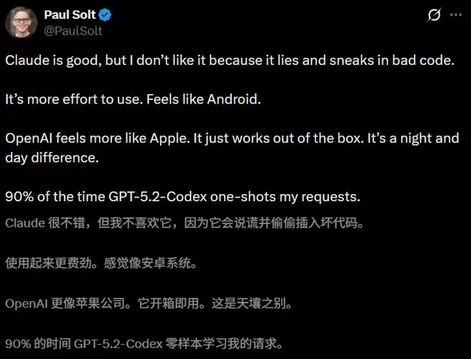 Claude虽然不错,但它偶尔会偷偷插入「坏代码」;相比之下,OpenAI的新方案更像苹果——主打一个开箱即用。