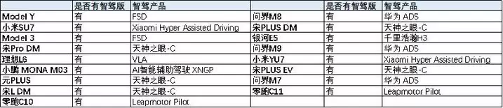 图:截止25年11月销量突破10万热销车型智驾版本,来源:懂车帝、车企正式
