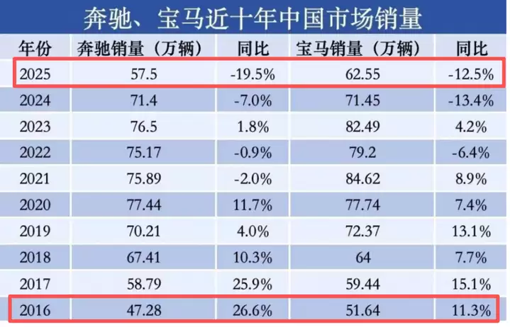 近日,更有消息称,奔驰宝马已向国内供应链给出2026年的初步需求预测量,均不足50万辆,这个数字,差不多是它们2016年在中国的销售水平。