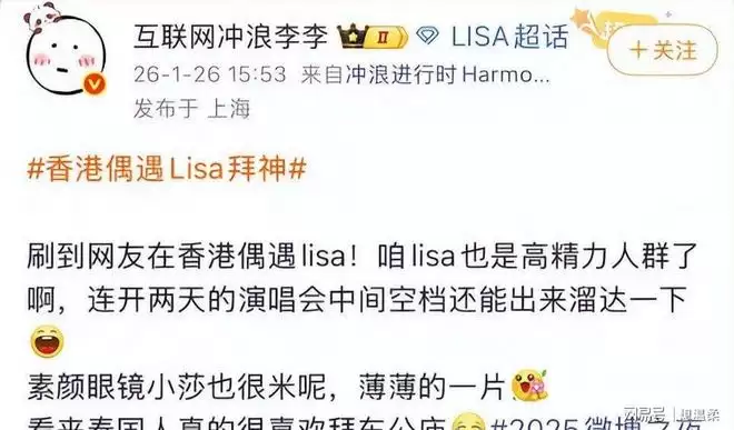 事件还原其实很简单,1 月 26 日中午,有网友在香港尖沙咀某商场逛街时,意外碰到了 Lisa。