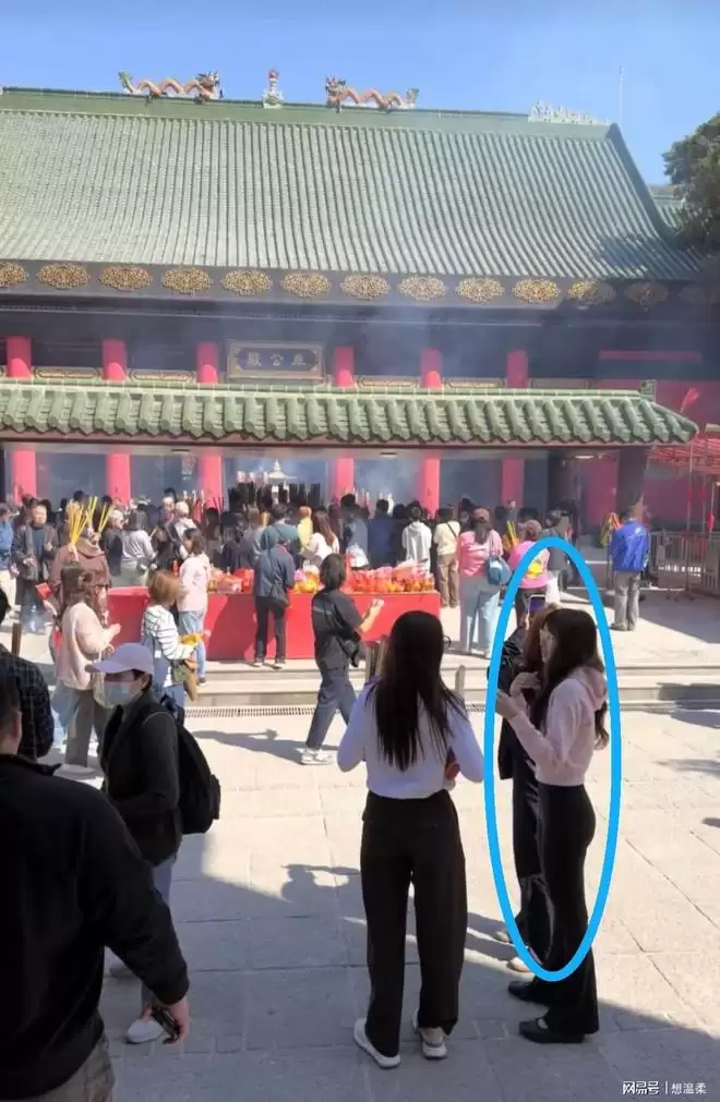 那个站在香炉前低头上香、素颜戴眼镜的女生,竟然是前两天还在启德主场馆炸场的Lisa?这反差也太大了。