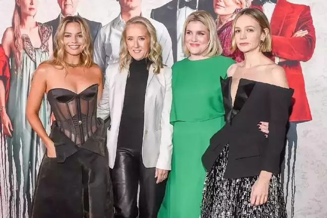 《萨特本》首映礼上的玛格特、亚马逊高管詹妮弗·萨尔克、埃默拉尔德、凯瑞·穆里根