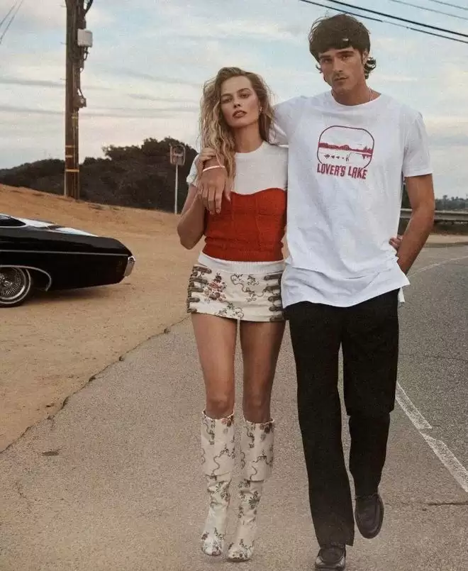 玛格特·罗比和雅各布·艾洛蒂当时正在追逐落日余晖。他们沿着日落大道驶向好莱坞山,开的是一辆罗比口中“酷毙了的雪佛兰英帕拉”。车篷敞开,风拂过发梢。35岁的罗比坐在副驾驶,而28岁的艾洛蒂掌控着方向盘。
