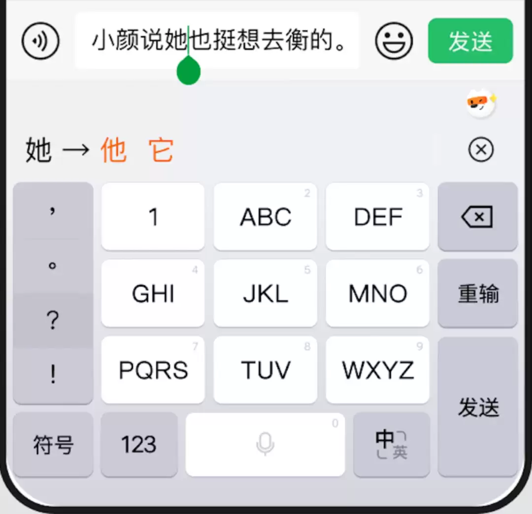 围绕中文输入中最常见的语法难点,诸如“的得地”、“他她它”等易混音词,新版提供一键智能替换能力,让语音转写结果更符合书面表达习惯。(该功能已率先在安卓版上线)