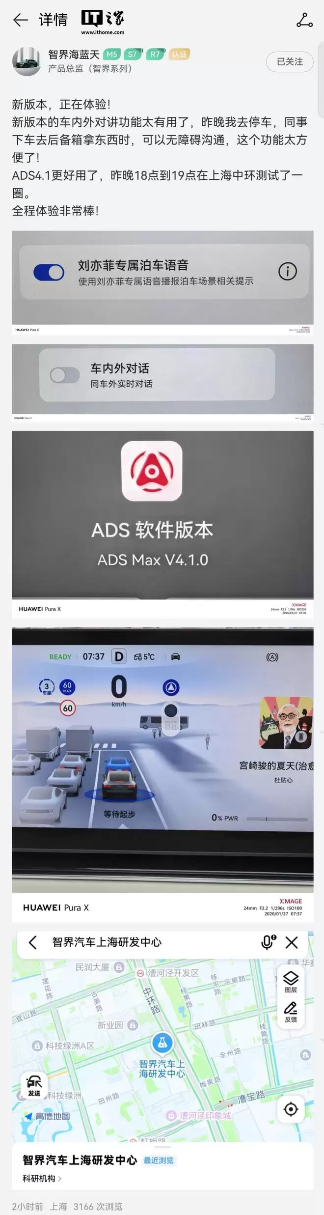 IT之家1月27日消息,据鸿蒙智行智界产品总监“智界海蓝天”今日分享,ADS 4.0系统即将迎来新版本更新。其中最引人注目的是,去年四月就已预告的刘亦菲专属语音包终于要正式亮相了,预计将随新版系统同步上线。