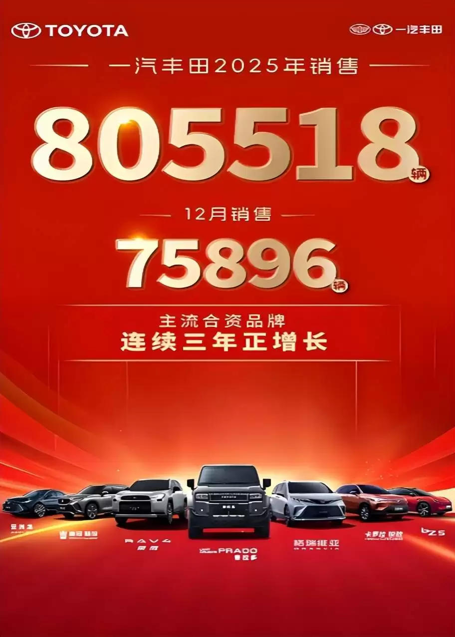 当中国汽车市场在2025年迎来1290款新车扎堆上市的盛况时,丰田却以一种近乎反常识的姿态在新能能源赛道上稳步前行。这家曾饱受转型迟缓诟病的日系巨头,凭借混动技术的深厚积淀与本土化战略的彻底重构,在合资品牌市场份额腰斩至30%的逆境中,交出了一份令人瞩目的成绩单:一汽丰田混动车型占比达47%,广汽丰田更突破50%,TNGA-K平台高端车型占比超60%。